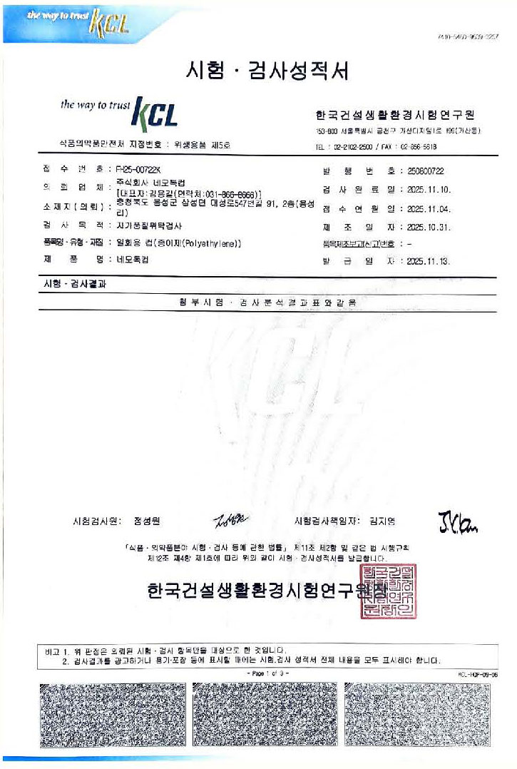KCL 시험검사 결과표